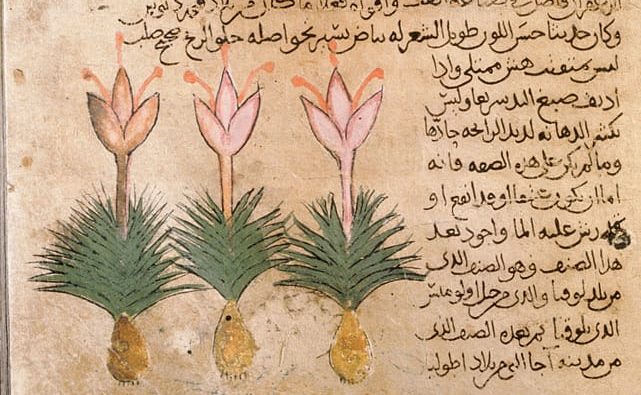 Ma perché oggi lo chiamiamo “zafferano” e non “croco”, come si è fatto per millenni? Oggi distinguiamo i due termini: “croco” indica la pianta nel suo complesso, mentre “zafferano” si riferisce specificamente alla spezia, cioè agli stimmi essiccati. La parola croco deriva dal termine semitico karkuma (da cui deriva anche “curcuma”), che significa “giallognolo”. I Greci lo adottarono trasformandolo in kròkos, da cui il latino crocus. Diversa è invece la storia del termine “zafferano”, che affonda le radici nel persiano zaʿfarān (dalla radice asfar, “giallo”), poi ripreso dall’arabo za’faran. Ed è proprio per il tramite arabo che il termine si impose in Europa, oscurando progressivamente l’antico nome greco-latino.